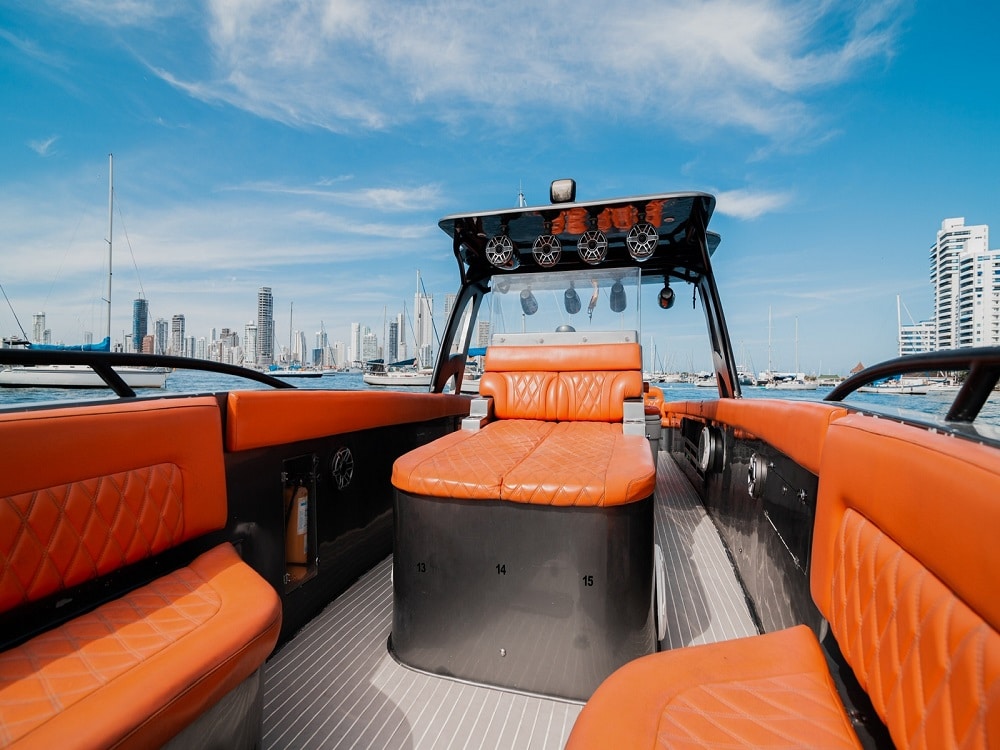 Experience the ultimate luxury boat rental in Cartagena aboard La Fantastika, a sporty speedboat designed for those seeking exclusivity, comfort, and total freedom during their trips around the Rosario Islands. Enjoy the Colombian Caribbean in the company of your family and friends, with a private service that elevates every moment at sea.