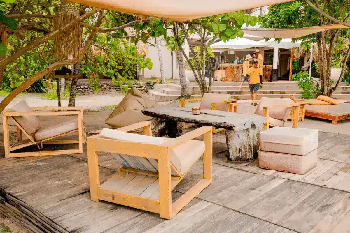 The landscape is a living postcard of the Caribbean: shades of deep blue blend with the green of the palm trees and the brilliant white of the sand. Here, every corner seems designed for relaxation.